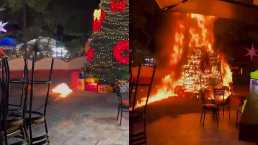 (VIDEO) Queman árbol navideño en Jonacatepec tras muerte de menor arrollado por patrulla municipal.