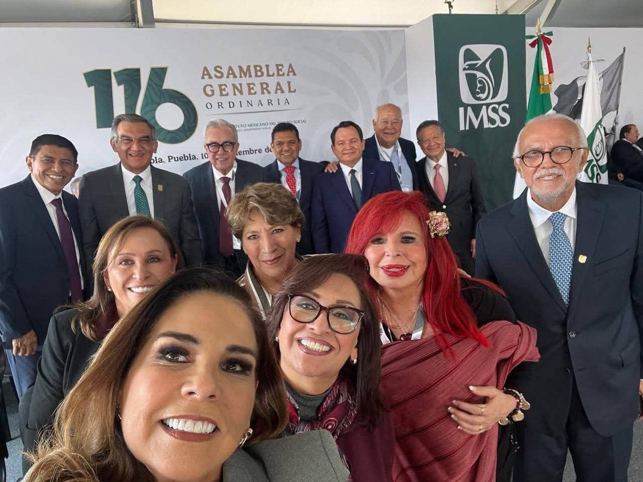 Tepic, Nayarit (RRC): El gobernador del estado de Nayarit, Miguel Ángel Navarro Quintero, asistió este miércoles a la 116 Asamblea General Ordinaria del Instituto Mexicano del Seguro Social (IMSS), evento presidido por la presidenta de México, Claudia Sheinbaum Pardo, y realizado en la ciudad de Puebla.
