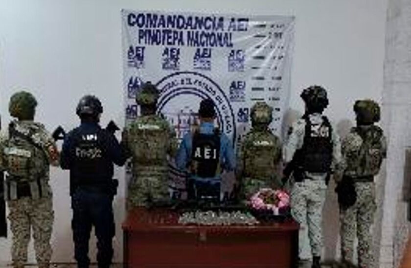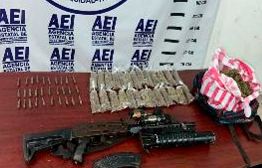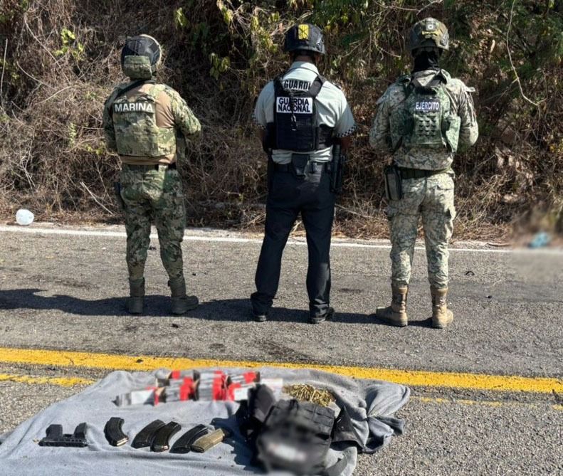 -En Santiago Pinotepa Nacional, elementos de Semar, Ejército Mexicano, GN y Policía Estatal, al realizar recorridos de seguridad, aseguraron un arma larga con un tubo lanzagranadas, un cargador, 30 cartuchos y 31 bolsas con marihuana.