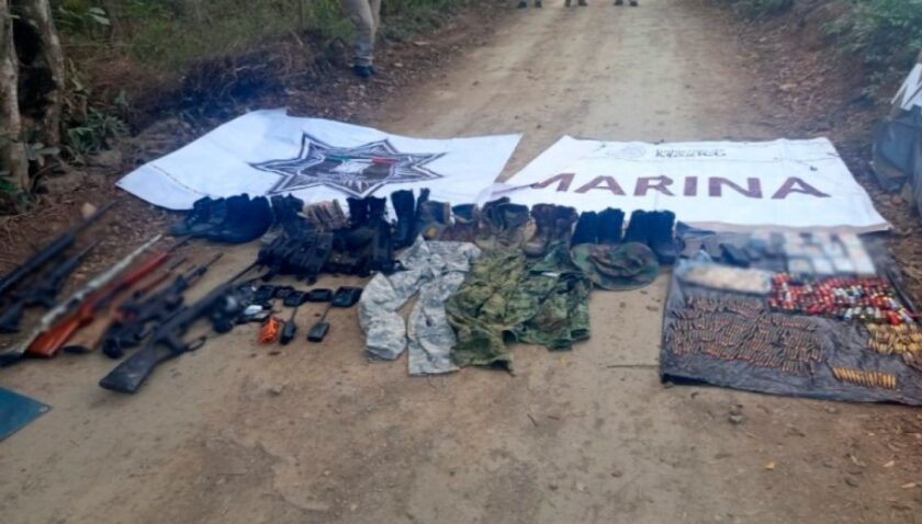 -En José Azueta, en el poblado San José Ixtapa, elementos de Semar, Ejército Mexicano, GN, Policía Estatal y Municipal aseguraron siete armas largas, 693 cartuchos, cinco cargadores, tres radios de comunicación, equipo táctico y químicos.