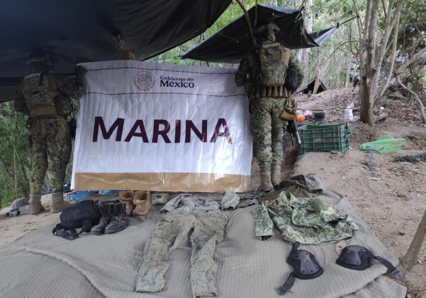 En una primera acción, personal naval durante recorrido en el poblado de Huahua, Mich., identificaron un campamento donde presuntos miembros de la Delincuencia Organizada realizaban distintas actividades ilícitas, encontrado en el lugar, tres armas largas con cargadores y diversos cartuchos, así como equipo táctico; por lo cual, se llevó a cabo la destrucción de citado campamento.