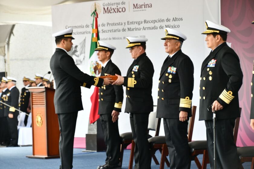 Ciudad de México.– Esta tarde se vivió un momento histórico en la vida institucional de la Secretaría de Marina-Armada de México, durante la Ceremonia de Toma de Protesta y Entrega-Recepción de Altos Funcionarios, momento que marca rumbo, dirección y visión de Estado, como parte de la reestructura y rotación de personal para que esta Institución cumpla con su misión de Servir a México.