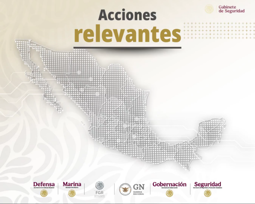 Las autoridades destacaron resultados en detenciones, aseguramientos de droga, armas, vehículos y otros bienes relacionados con actividades delictivas, principalmente en operativos coordinados entre la Guardia Nacional (GN), la Secretaría de la Defensa Nacional (Sedena), la Secretaría de Marina (Semar), la Fiscalía General de la República (FGR) y fuerzas estatales.