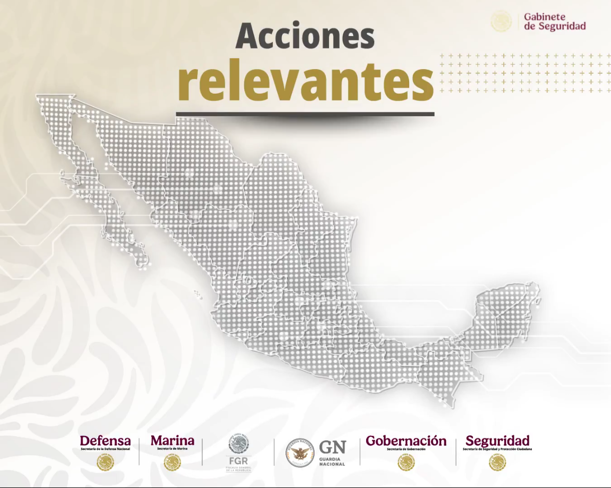Estas acciones forman parte de los ejes estratégicos de la política de seguridad: atención a las causas, consolidación de la Guardia Nacional, fortalecimiento de la inteligencia e investigación, y coordinación con las entidades federativas.