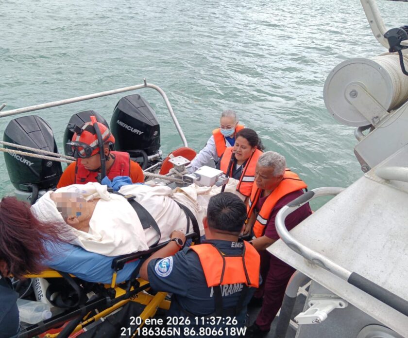 Por lo anterior, se ordenó el zarpe inmediato de una embarcación tipo Defender con personal especializado a bordo, para realizar el traslado de citada persona a Puerto Juárez, donde fue recibida por una ambulancia particular para ser trasladada a un hospital de la localidad, con el fin de continuar con su atención médica especializada.