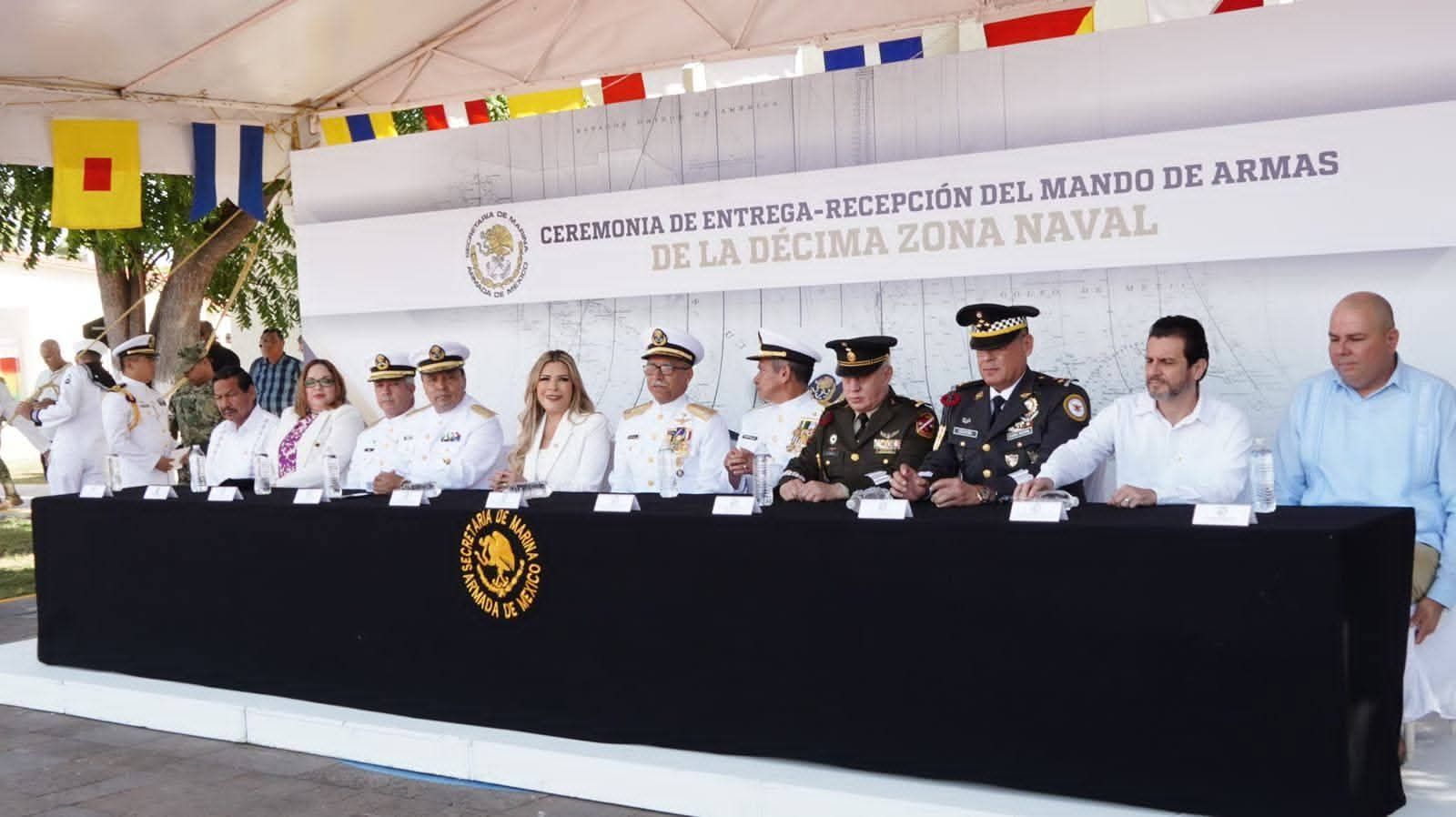 En representación del gobernador Miguel Ángel Navarro Quintero, la secretaria general de Gobierno, Rocío Esther González García, asistió al acto protocolario. Durante la ceremonia, el Vicealmirante C.G.D.E.M. Miguel Ángel García Portillo asumió oficialmente el cargo de comandante titular de la Décima Zona Naval, relevando al Contralmirante C.G.D.E.M. Ángel Adolfo Mora Chávez.