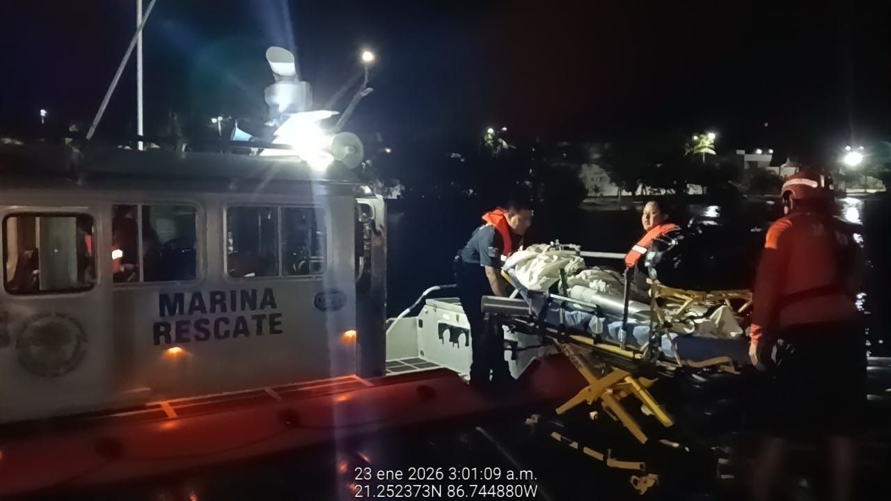 Inmediatamente, se ordenó el zarpe de una embarcación tipo Defender con personal naval especializado a bordo. La unidad navegó desde Isla Mujeres hasta Puerto Juárez, donde la paciente fue entregada de manera segura a una ambulancia particular que la trasladó a un hospital de la localidad para continuar con su atención médica especializada.