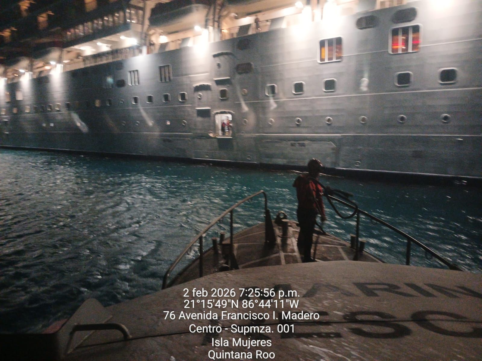 La operación se activó tras recibir una llamada de auxilio del crucero, donde se reportó que la pasajera presentaba una amenaza de aborto en un embarazo de 22 semanas de gestación. Ante la urgencia, la Estación Naval de Búsqueda, Rescate y Vigilancia Marítima (ENSAR) de Isla Mujeres desplegó de inmediato una embarcación tipo Defender equipada con personal de sanidad naval especializado.