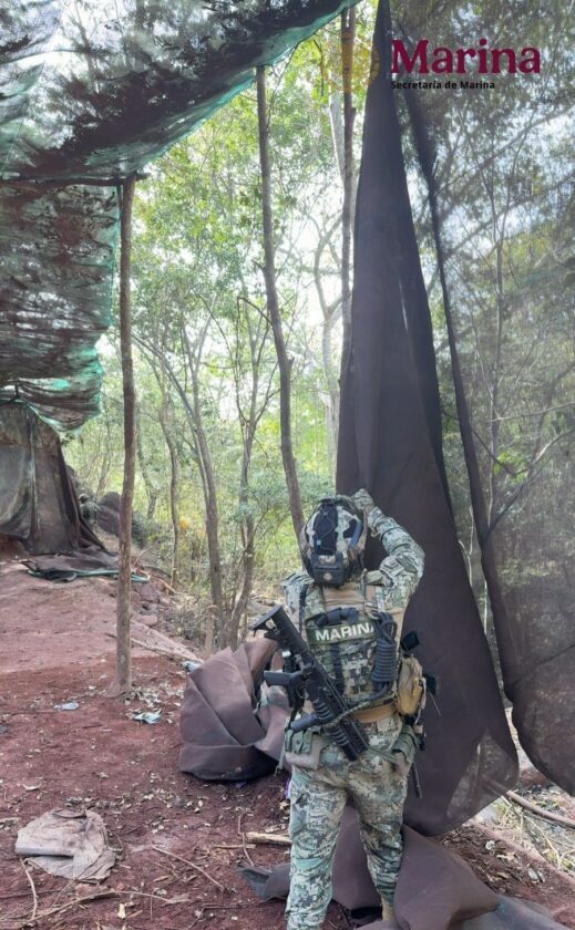 Culiacán, Sinaloa (RRC): La Secretaría de Marina (Semar) localizó un campamento con cubitanques presuntamente usados para actividades ilícitas de combustible, y aseguró armas, municiones, vehículos y dosis de droga durante operativos en distintos puntos de Sinaloa, según informó la dependencia a través de la Cuarta Región Naval.