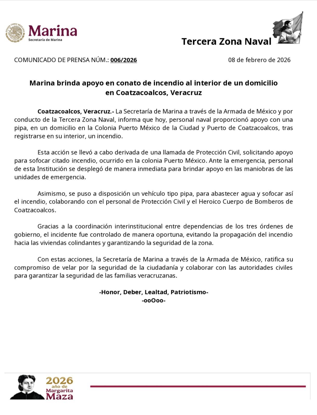 Coatzacoalcos, Veracruz (RRC): Elementos de la Secretaría de Marina-Armada de México apoyaron de manera inmediata a las autoridades civiles para controlar un conato de incendio registrado al interior de un domicilio en la colonia Puerto México. De acuerdo con un reporte de la Tercera Zona Naval, el apoyo fue solicitado por Protección Civil tras detectarse el fuego en una vivienda de esa colonia. Personal naval se trasladó de inmediato al lugar y puso a disposición un vehículo tipo pipa para abastecer de agua a las unidades de emergencia. La pipa…