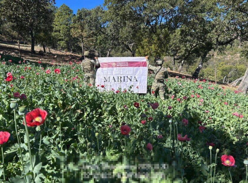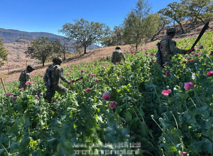 Los cultivos ilícitos abarcaban una superficie aproximada de 98,100 metros cuadrados, donde se destruyeron en el lugar alrededor de 1 millón 962 mil plantas de amapola.