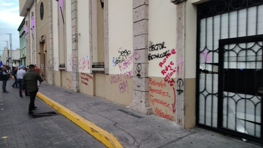 Lo que inició como una movilización bajo la bandera de la «paz» terminó en un asalto visual y material contra el patrimonio histórico de los nayaritas. Integrantes del Colectivo Feminista de Nayarit convirtieron el Centro Histórico en un lienzo de vandalismo, arremetiendo directamente contra la fachada del Palacio de Gobierno, sede del Poder Ejecutivo, dejando a su paso una estela de daños que ha encendido el descontento ciudadano y la exigencia de justicia por el agravio a los símbolos del estado.