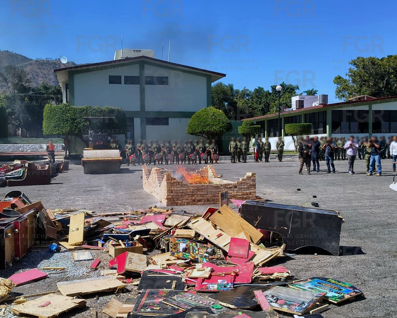 Tepic, Nayarit (RRC): La Fiscalía General de la República (FGR) llevó a cabo este jueves la destrucción e incineración de 242 máquinas tragamonedas y más de 27 kilogramos de narcóticos en el municipio de Tepic, Nayarit, como parte de acciones para eliminar objetos del delito y bienes asegurados en diversas investigaciones federales. El procedimiento, realizado en las instalaciones de la Decimotercera Zona Militar, incluyó la destrucción de las 242 máquinas tragamonedas —comúnmente asociadas al juego ilegal y en ocasiones vinculadas a grupos delictivos— y la incineración de 27 kilos 43…