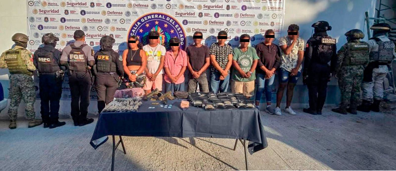 Acapulco, Guerrero (RRC): Elementos de la Secretaría de Marina-Armada de México, en coordinación con la Secretaría de la Defensa Nacional, Guardia Nacional, Secretaría de Seguridad y Protección Ciudadana, Policía Estatal y la Fiscalía General del Estado, detuvieron a ocho personas por presuntos delitos contra la salud en la avenida Costera Miguel Alemán, en el fraccionamiento Deportivo. La detención se realizó la tarde-noche de este martes 10 de febrero durante un operativo de vigilancia y seguridad en la zona. De las ocho personas aseguradas, siete son hombres y una es mujer.…